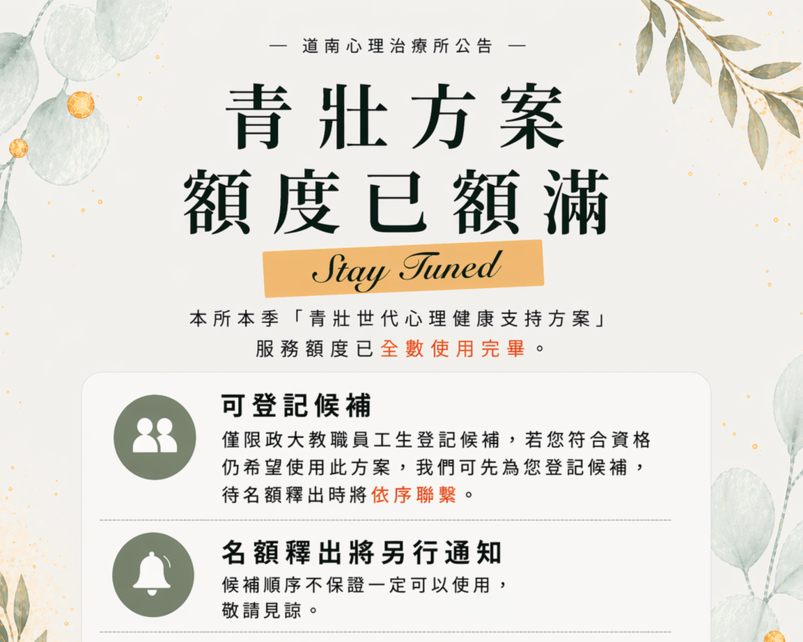 「道南心理治療所」願在這段旅程中成為你的心靈避風港,陪你慢慢說出生活中的那些「難」,重新連結內在的力量與方向。